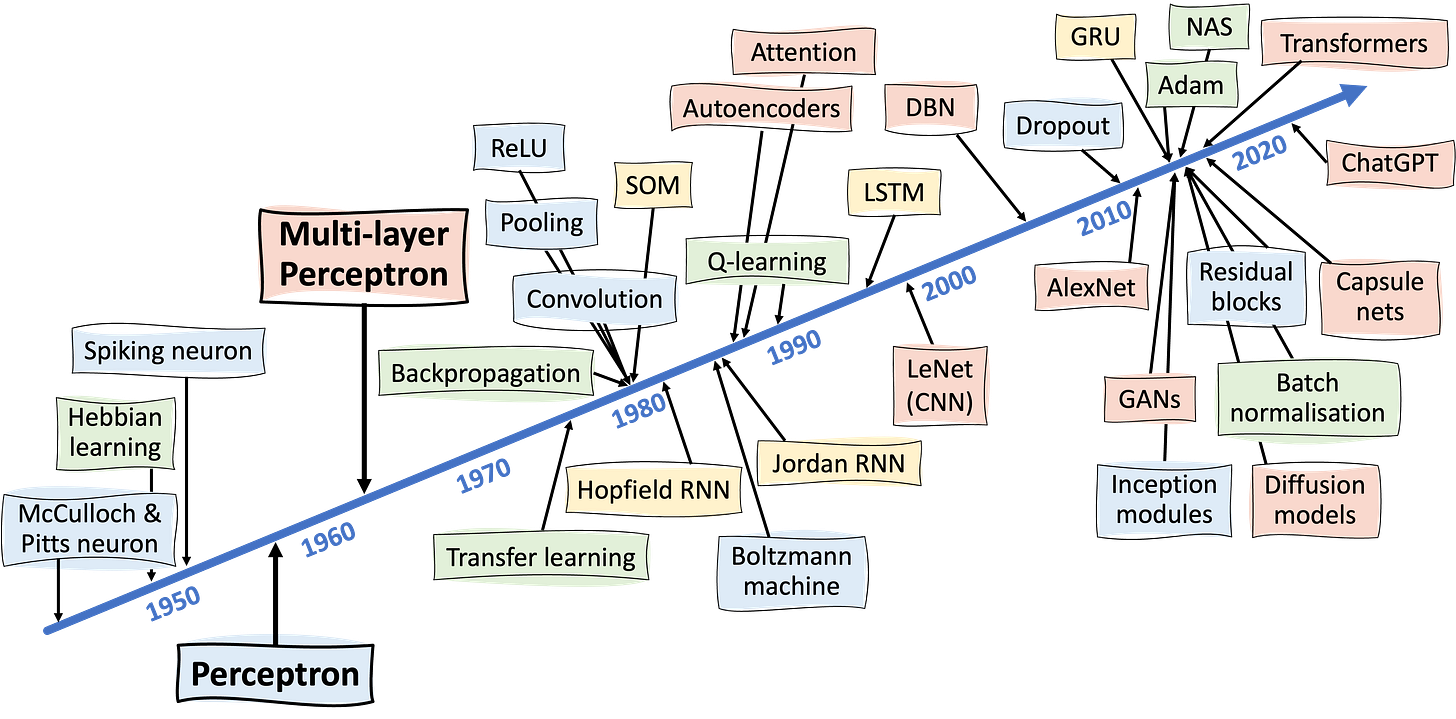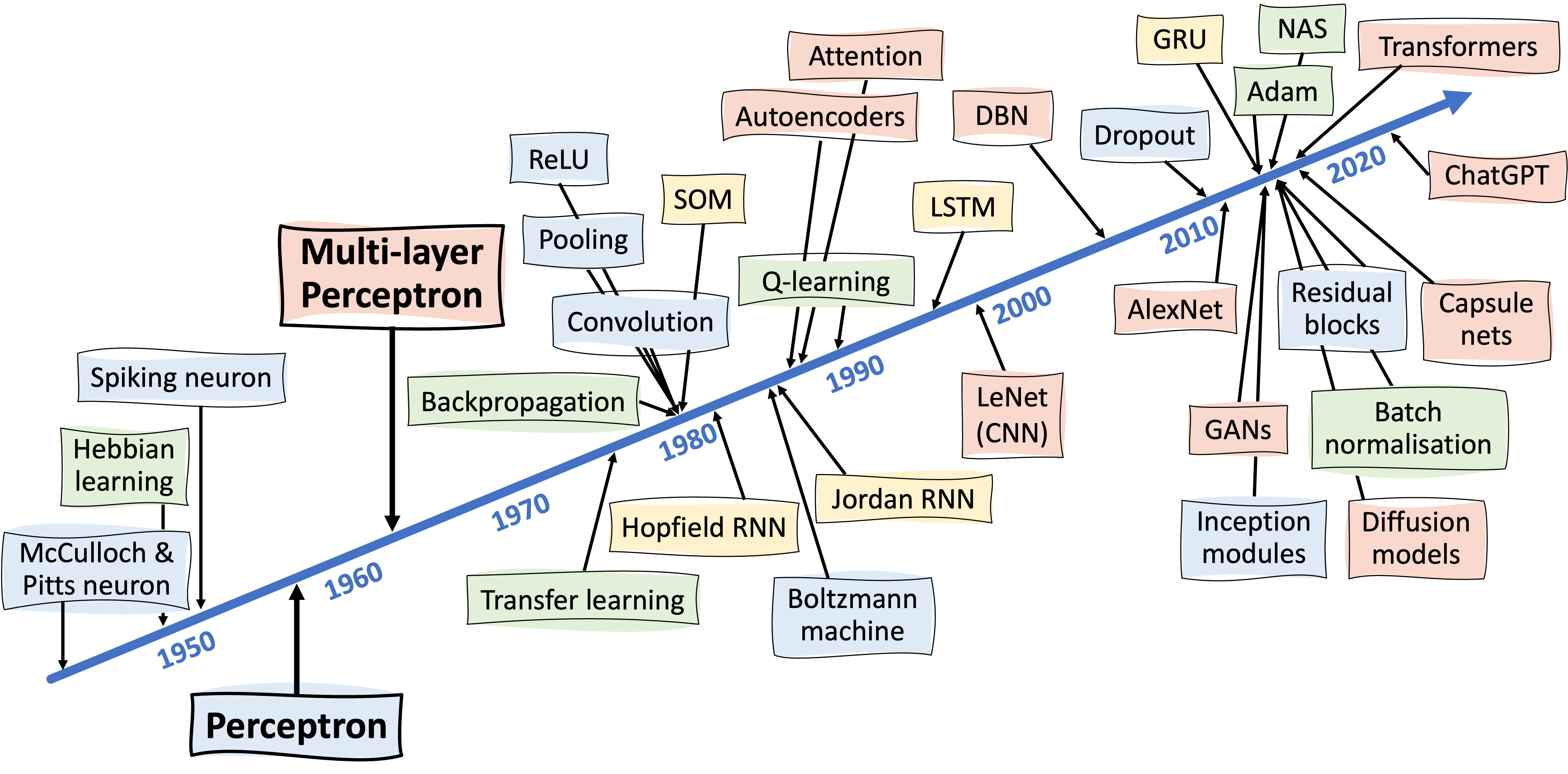 To put things in context, this timeline shows just how far back they appear in the history of deep learning — and indeed how far back many of the things we take for granted first appeared (also see Neural networks: everything changes but you):